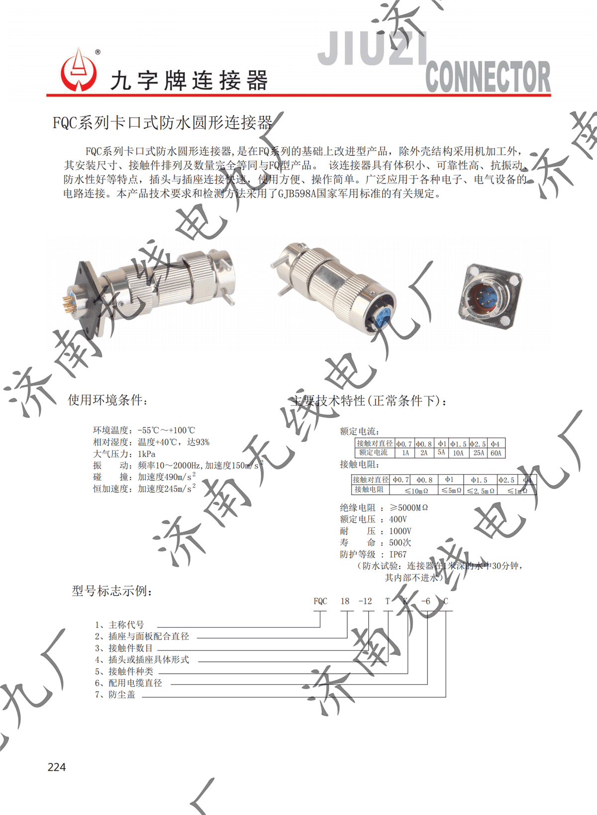 產(chǎn)品型號:FQC系列卡扣式防水圓形連接器