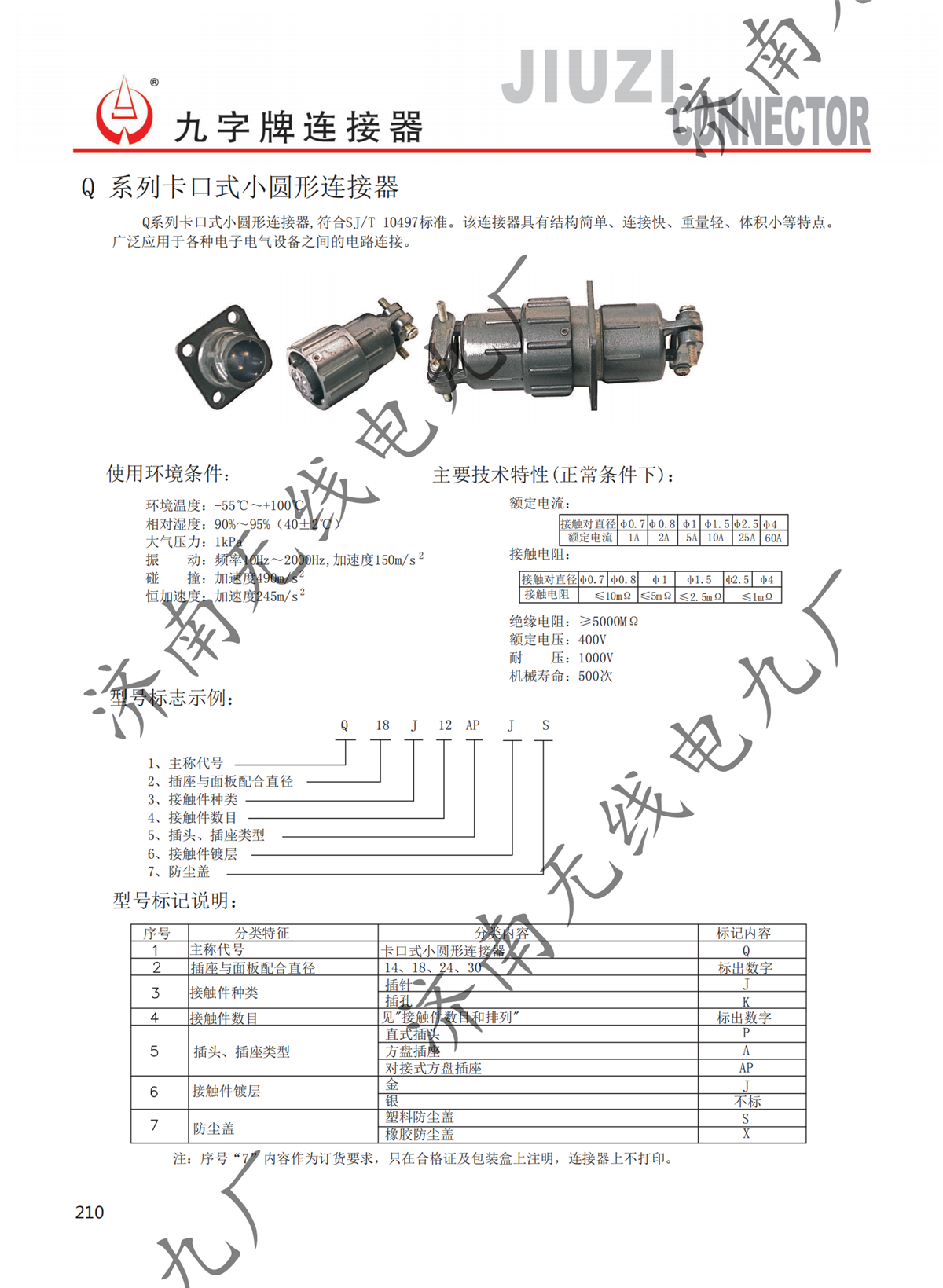產(chǎn)品型號(hào):Q系列卡扣式小圓形連接器