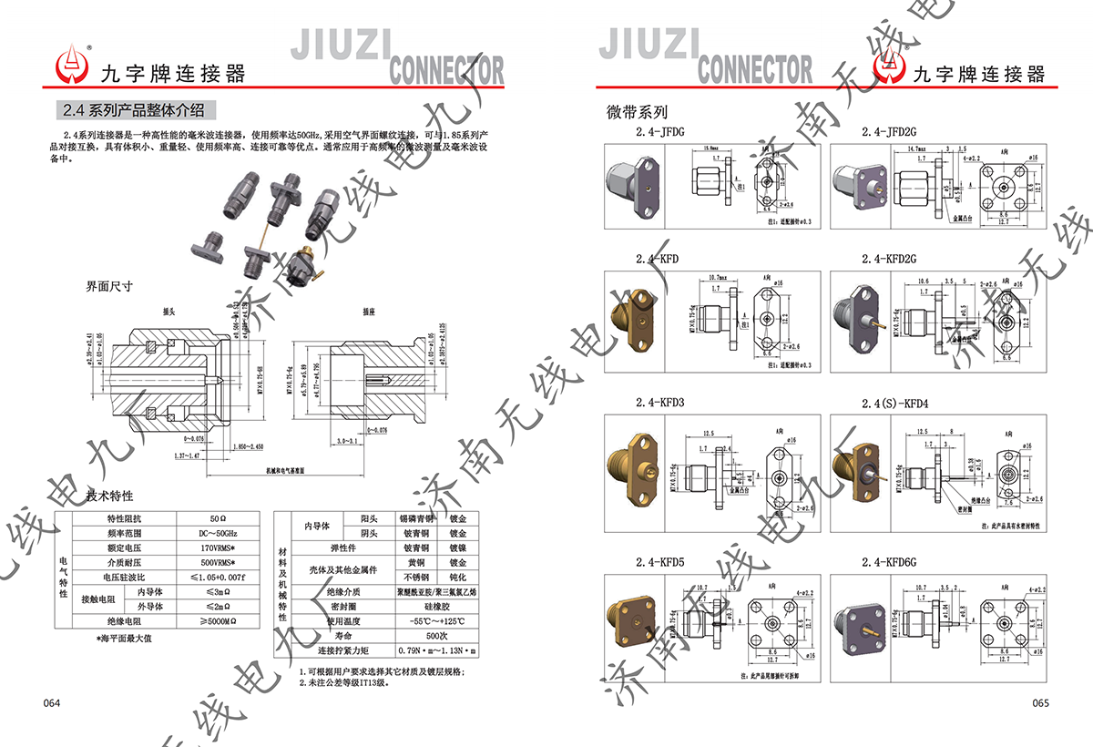 2.4系列連接器是一種高性能的毫米波連接器,使用頻率達(dá)50GHz,采用空氣界面螺紋連接,可與1.85系列連接器對(duì)接互換,具有體積小、重量輕、使用頻率高、連接可靠等優(yōu)點(diǎn)。廣泛應(yīng)用于高頻率的微波測(cè)量及毫米波設(shè)備中
